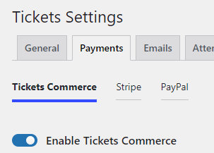 7. Make sure to Enable Tickets Commerce under the Payments tab.