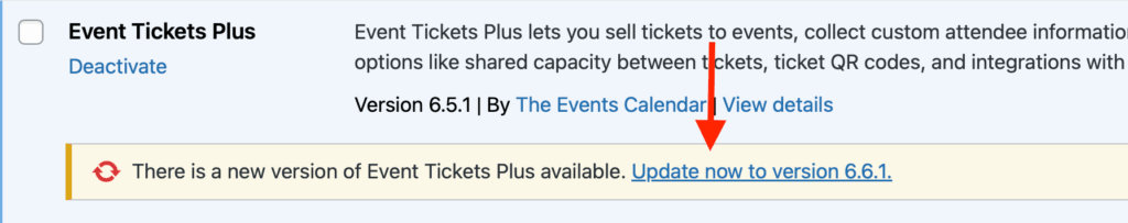 - Then, update the premium plugins (Events Calendar Pro and/or Event Tickets Plus).