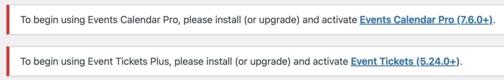 - First, update the free plugins (The Events Calendar and/or Event Tickets).