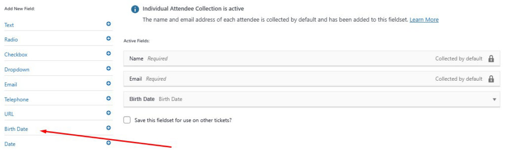 This customization applies only if you are using the Birth Date field in your Attendee Information settings as shown below: