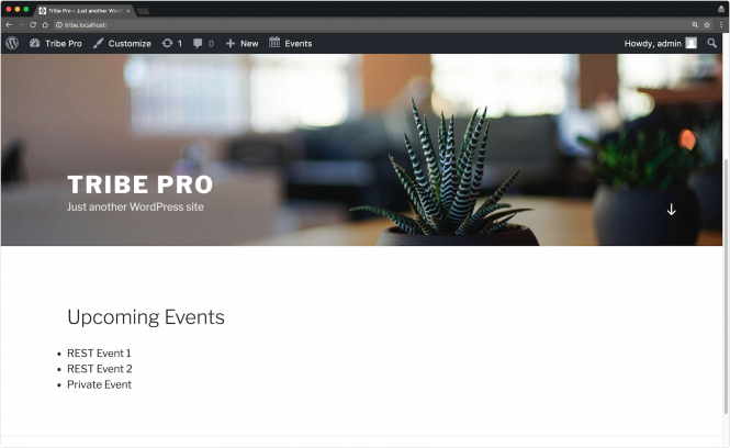 In the following examples, we’ll assume the site on which The Events Calendar REST API is active can be reached at http://tribe.localhost–so keep that in mind.